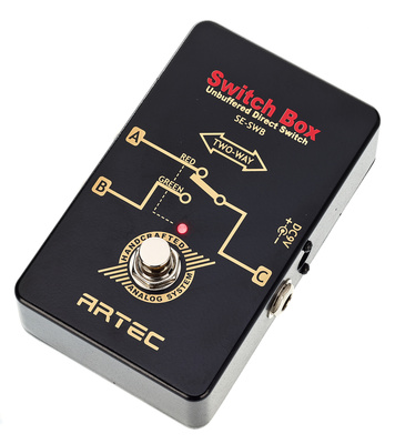 De Artec SE-SWB A/B Box is een schakelbox waarmee signalen in beide richtingen gelegd kunnen worden. Het heeft 3 jack in/out, een 9V voeding, LED indicator en voetschakelaar. De maten zijn 75,5 x 116 x 49 mm.