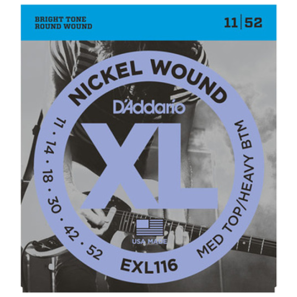 De D’Addario EXL116 is een snarenset voor E-gitaar met een warme en heldere sound. De set bevat diktes van 011 tot 052 en is geoptimaliseerd voor zowel standaard als drop stemmingen.