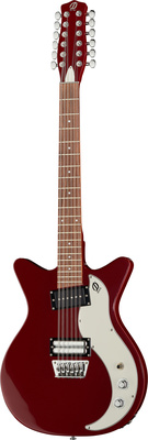 De Danelectro 59X12 Blood Red is een 12-snarige elektrische gitaar met een double cutaway bodyvorm, populieren frame en middenblok, Masonite boven- en achterblad, esdoorn hals en pau ferro fretboard. De gitaar heeft P90 pickups (hals) en een splitbare Dual Lipstick humbucker (brug), 1 volume control, 1 tone control met push/pull-functie voor coil split en een 3-standenschakelaar. De vaste brug heeft individueel instelbare brugzadels. De kleur is Blood Red en er is een bijpassende koffer beschikbaar (niet inbegrepen).