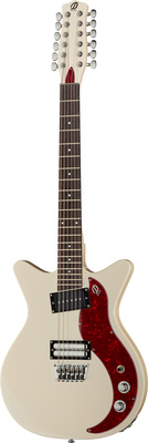 De Danelectro 59X12 vintage cream is een 12-snarige E-Gitaar met een double cutaway model. Het heeft een frame en middenblok van populierenhout, een Masonite rug en top, een esdoorn hals en een pau ferro fretboard met 21 fretten. De gitaar heeft P90 pickups (hals) en een splitbare Dual Lipstock humbucker (brug), 1 volume control, 1 tone control met push/pull-functie voor coil split en een 3-weg schakelaar. Het heeft pro hardware, een vaste brug met individueel instelbare geleiders en een vintage cream finish.
