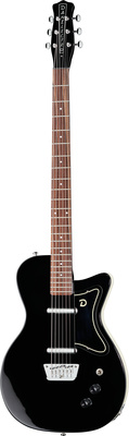 De Danelectro DE56 Baritone Guitar BK is een elektrische gitaar met een small bell headstock en een verbeterde nieuwe editie. De hals is gemaakt van esdoorn en de fretboard van pau ferro met tape binding. De gitaar heeft 24 frets en 2 lipstick single coil pickups. De stemmechanieken zijn 3+3 Kluson-style en er zit een transparante slagplaat op. De schaal is 756 mm en de kleur is zwart.
