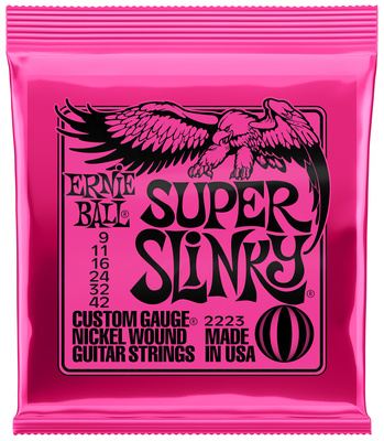 De Ernie Ball 2223 Super Slinky snaren zijn geschikt voor elektrische gitaren en hebben een dikte van .009-.042. Ze zijn gemaakt van vernikkeld staal en worden geproduceerd in de Verenigde Staten.