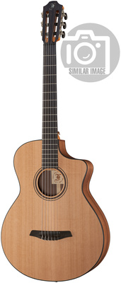 De Furch GNc2-CW Grand Nylon is een klassieke gitaar met een unieke uitstraling. De gitaar heeft een cutaway en is voorzien van een massief rood cederhouten top (Thuja plicata) en een massieve walnoothouten body (Juglans nigra). De mahonie hals (Khaya ivorensis/Africa) is voorzien van een ebbenhouten fretboard en brug (Diospyros mespiliformis). De breedte van de nut is 45 mm en de scale is 650 mm. De gitaar heeft 18 fretten en een rozet in zwart/walnoot. De body binding is in tortoise style en de mat transparante slagplaat maakt het geheel af. De standaard snaren zijn Savarez Alliance HT (Art. #233638#). De finish is open pore en de kleur is naturel. De Furch GNc2-CW Grand Nylon is gemaakt in Tsjechië.