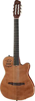 De Godin ACS Nylon is een veelzijdige akoestische gitaar met nylon snaren, geschikt voor concerten en elektrische optredens. Met een esdoorn body en een massief cederhouten top produceert de gitaar een warme en heldere klank. De hals is gemaakt van mahonie en het fretboard van richlite, met 22 frets. De gitaar heeft custom RMC pickups met preamp en Roland GR 13-pin aansluiting, en de controls omvatten volume, mid, bass, treble en MIDI up/down. De stemmechanieken hebben een 16:1 ratio en de gitaar wordt geleverd met een gig bag.