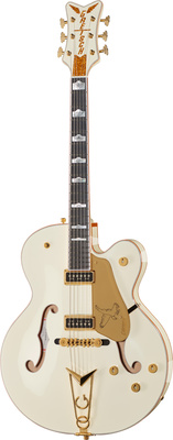 De Gretsch G6136T-55VS White Falcon is een elektrische gitaar van het Vintage Select Model met een holle body en een uitsparing. De body is gemaakt van 3-laags gelamineerd esdoorn en is voorzien van een Gold Sparkle Binding voor een extra luxe uitstraling. Met een kastdiepte van 5,72 cm (2,25″) en een kastbreedte van 43,20 cm (17″) biedt deze gitaar een comfortabele speelervaring. De esdoorn hals is versterkt met walnoot strips en heeft 22 medium frets voor een soepele en nauwkeurige speelervaring. Het fretboard is gemaakt van ebbenhout en is versierd met gegraveerde Hump Block inlays voor een stijlvolle uitstraling. Met een neck radius van 12″ en een bonesaddle en topkam breedte van 42,62 mm biedt deze gitaar een uitstekende bespeelbaarheid. Met een scale van 648 mm is deze gitaar geschikt voor verschillende speelstijlen. De Gretsch G6136T-55VS White Falcon is uitgerust met 2 TV Jones T-Armond pickups, een Synchro-Sonic brug, Grover Imperial tuners en een Gretsch Cadillac Tailpiece voor een veelzijdig en betrouwbaar geluid. De vergulde hardware voegt een vleugje elegantie toe aan het uiterlijk van de gitaar. De originele besnaring is Daddario 0,011-0,049 (art ##104556#) voor een helder en gebalanceerd geluid. Met een witte afwerking en een bijpassende case is deze gitaar een echte blikvanger. De Gretsch G6136T-55VS White Falcon is een absolute must-have voor elke serieuze gitarist die op zoek is naar een hoogwaardig instrument met een prachtig geluid en een unieke uitstraling.