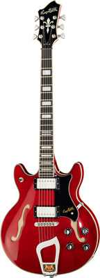 De Hagstrom Alvar WCT is een E-Gitaar met een gelamineerde esdoorn body en een kleine half-resonantie body met doorlopende sustainblock. De gitaar heeft een Canadees esdoorn hals, Resinator fretboard en perloid block fretboardinlays. De pickups zijn 2 HJ humbuckers en er is een 3-weg schakelaar, 2 volume en 2 tone control. De gitaar heeft Hagstrom design mechanieken en een “”Long Travel”” tune-o-matic brug met Hagstrom trapeze. De standaard snaren zijn D’Addario EXP11 .010 – .046 en de finish is wild cherry transparent.