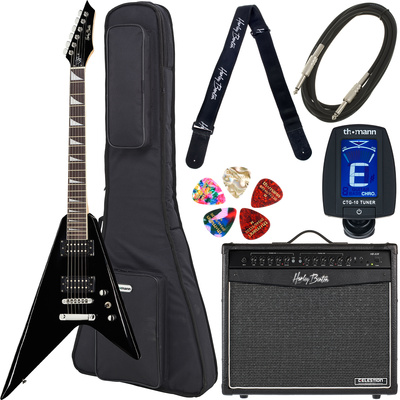De Harley Benton R-10 BK Rock Series Bundle 3 is een complete set voor gitaristen die op zoek zijn naar een krachtige versterker en een kwalitatieve elektrische gitaar. Deze bundel bestaat uit de Harley Benton HB-80R comboversterker, de Harley Benton RX-10 BK Rock Series elektrische gitaar, een Thomann V-Style gigbag, een Harley Benton HBN BK draagband, een Thomann CTG-10 clip tuner, een the sssnake IPP1030 instrumentenkabel en een set van vijf Harley Benton Guitar Pick Medium plectrums.