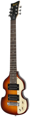 De Höfner Shorty Violin Guitar is een elektrische gitaar met een mahoniehouten body en een esdoornhouten hals. De gitaar heeft een rosewood toets, 24 frets en 2 Höfner humbuckers. De schaal is 628 mm en de topkam breedte is 42 mm. De gitaar heeft een wraparound brug en teacup pot knoppen. De kleur is sunburst.