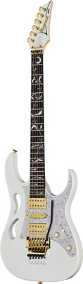 De Ibanez PIA3761-SLW is een elektrische gitaar uit de PIA-serie, ontworpen als het handtekeningmodel van Steve Vai. De gitaar heeft een elzenhouten body, een geschroefde hals van esdoorn- en walnotenhout, en een palissanderhouten fingerboard met PIA Blossom inlays. Met 24 jumbo frets van edelstaal, 2 DiMarzio UtoPIA-humbuckers en 1 DiMarzio UtoPIA single-coil, biedt deze gitaar een breed scala aan geluidsmogelijkheden. De gitaar heeft een luxe uitstraling met gouden hardware en een Stallion White kleur. Een koffer is inbegrepen. Gemaakt in Japan.