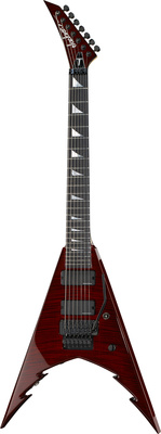 De Jackson Corey Beaulieu King V 7 TR USA is een hoogwaardige elektrische gitaar met 7 snaren en een V-stijl. De gitaar heeft een stevige constructie met een elzen body en doorlopende esdoorn hals. Het ebbenhouten fretboard heeft 24 fretten met parelmoeren haaienvin inlays. De gitaar is voorzien van 2 Seymour Duncan Blackouts AHB7 humbucker pickups en een Floyd Rose Double Locking 2 point tremolo. De transparante rode afwerking geeft de gitaar een stoere uitstraling. Een koffer wordt meegeleverd voor veilig vervoer.