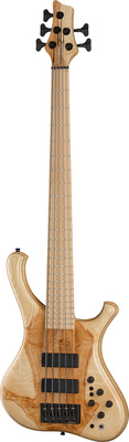 Regio Tone Wood Series, bass guitar, 5-string, only native wood from the region of Harz was used, maple body, selected ash top, 3-piece 6 screws bolt-on maple neck, nut width: 40 mm, scale: 864 mm (34 Zoll), flamed maple fretboard, 24 frets, 2x Delano SBC humbucker pickups, pickup split, Marleaux EQ BC3 electronics (3-band active/passive), black hardware, Schaller tuners, colour: natural, incl. Marleaux gigbag, made in Germany