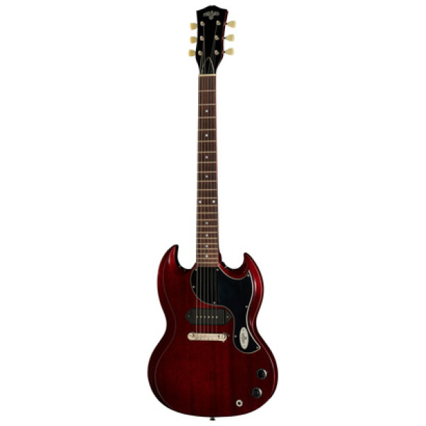De Maybach Albatroz 65 Aged Dark Winered is een elektrische gitaar met een eendelige mahonie body en hals, palissander fretboard en Amber P 90 pickups. Het heeft 1 volume en 1 tone control, Kluson stemmechanieken en wordt geleverd met een koffer. De nitrocellulose aged finish en de kleur Dark Wine Red maken het een opvallende gitaar.