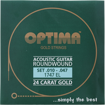 De Optima 1747EL is een snarenset voor akoestische gitaren, gemaakt in Duitsland en verguld met 24-karaats goud. De set bevat snaren met diktes van 010 tot 047w.