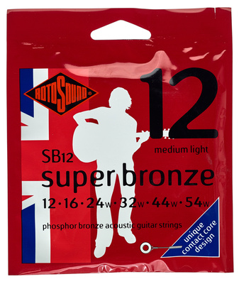 De Rotosound SB12 Super Bronce is een set snaren voor de westerngitaar, gemaakt van phosphor bronze met een contact core. De set bevat snaren met diktes van 012 tot 054.