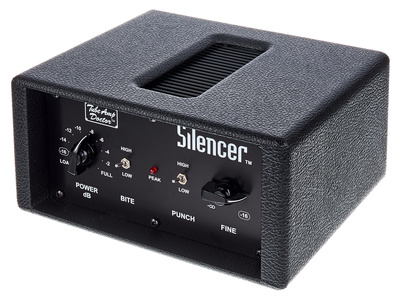 Echter, het gebruik van een 50 W of 100 W buizenversterker met eindtrapvervorming op vol volume kan leiden tot gehoorbeschadiging van de muzikant of zijn publiek. De TAD Silencer biedt hierbij de oplossing. Het apparaat wordt tussen de luidspreker en de versterker geschakeld, waardoor een door de gebruiker bestuurbaar deel van de vermogensuitvoer van de versterker in de doos achterblijft. De Silencer converteert de overblijvende overtollige energie in warmte. Het volume kan worden aangepast in stappen van 2 dB tot -16 dB (vermogen). Er is een fijnafstemming (FINE), waardoor een meer continue aanpassing mogelijk is.