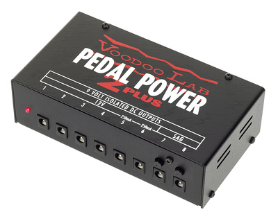 De Voodoo Lab Pedal Power 2 Plus is een universele voeding voor batterij-aangedreven (gitaar) effect units. Het biedt de benodigde spanningen voor diverse pedalen en kan meerdere uitgangen combineren op 18V of 24V. Twee uitgangen kunnen worden gecontroleerd om “slappe” batterijen te simuleren, wat vooral interessant is voor Fuzz en Wah pedalen. De voeding is geruisarm en alle 8 uitgangen zijn beveiligd tegen kortsluiting en gefilterd. Het wordt geleverd met een netsnoer en snoer en heeft de productnaam Pedal Power 2 Plus.